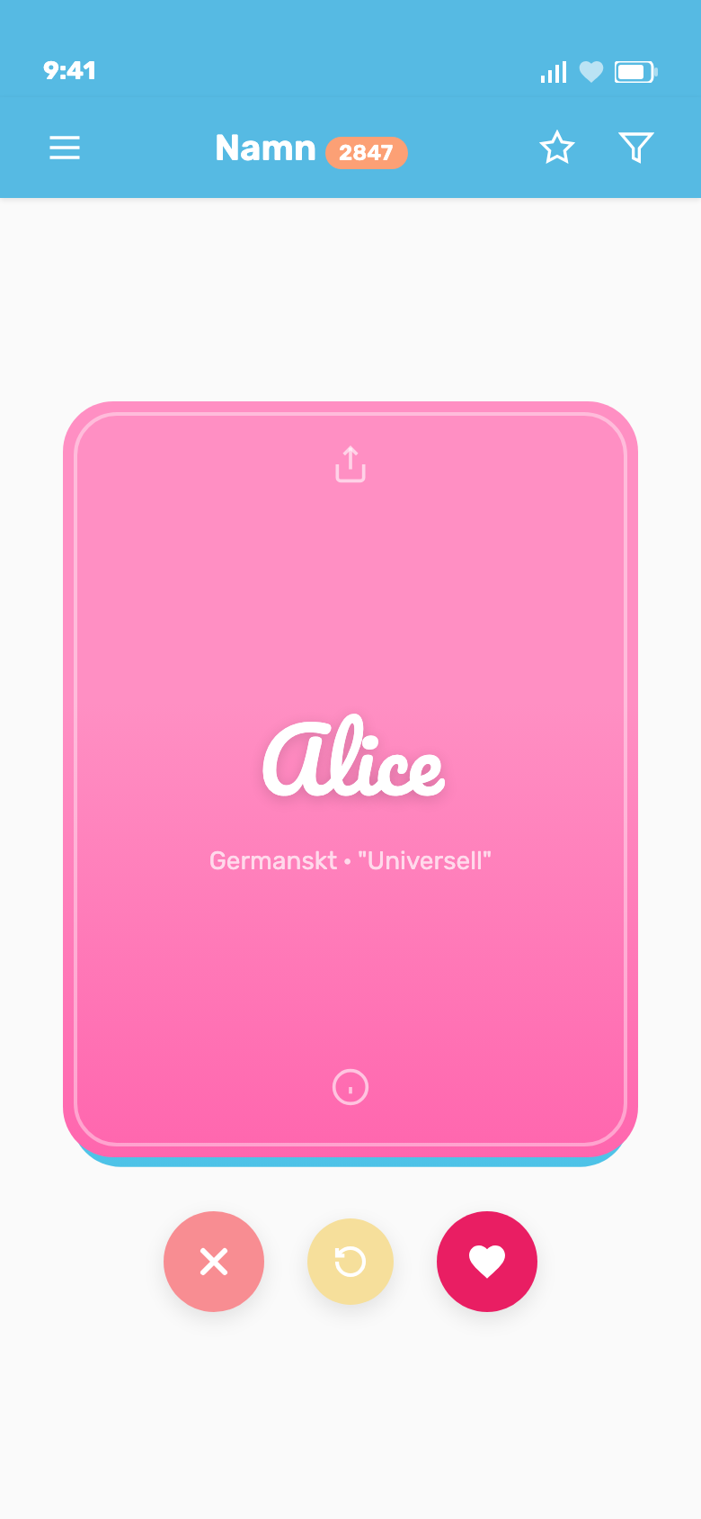 Swipe through names Tinder-style. See which ones you and your partner both loved.